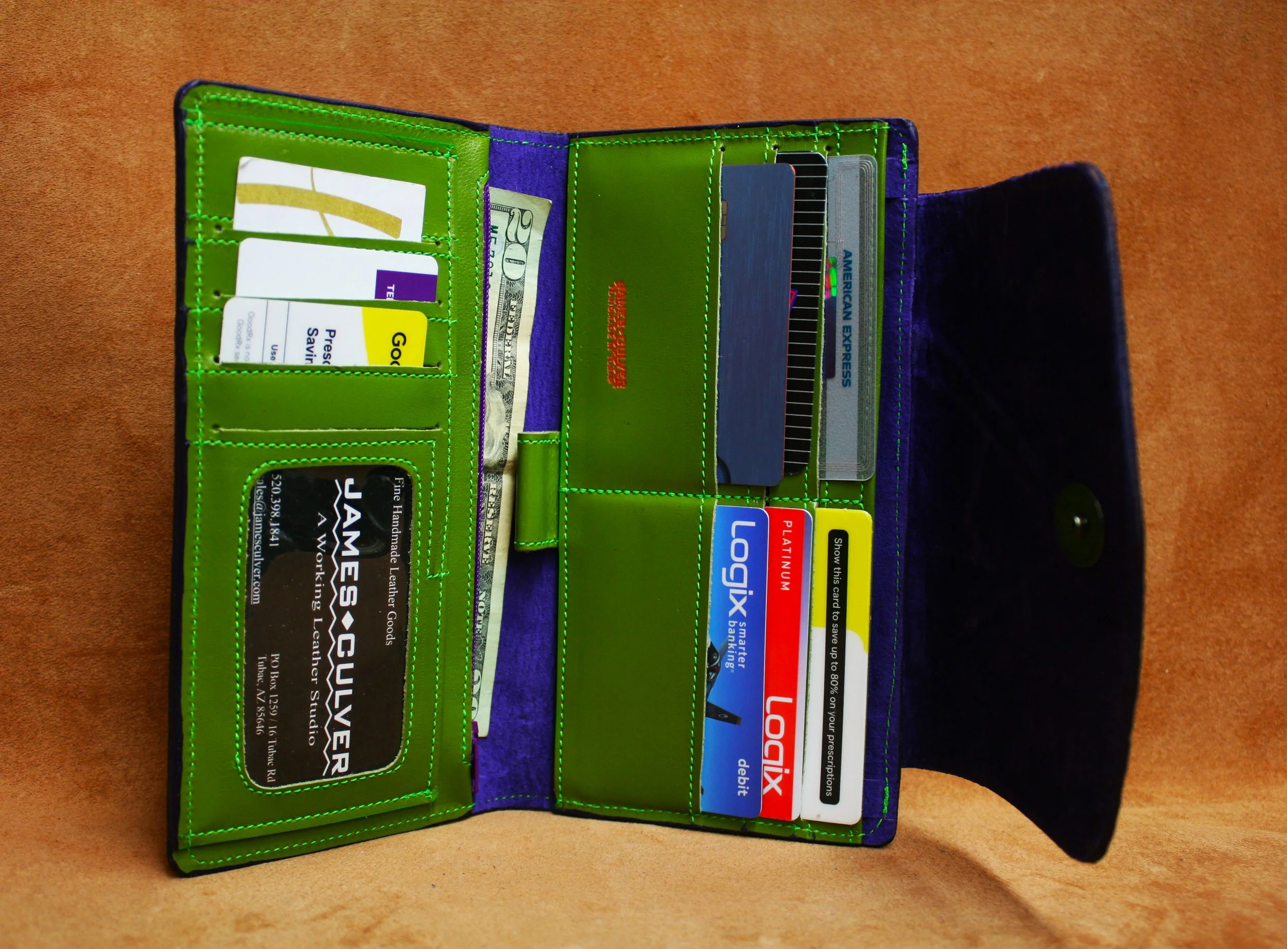 #1 - Std inside with magnetic flap closure on the card/bill section and a zipper coin pocket on the back $195
